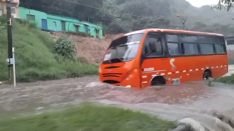 la vía principal se encuentra inundada, generando caos vehicular y poniendo en riesgo a peatones y motociclistas.