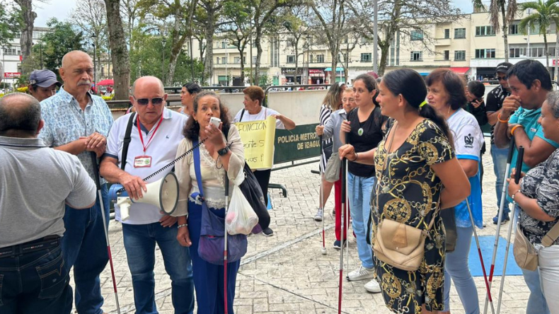 Personas con discapacidad visual protestan frente a la Alcaldía de Ibagué
