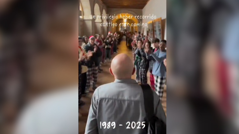 El docente fue sorprendido por sus estudiantes con un emotivo homenaje en su último día de clases.