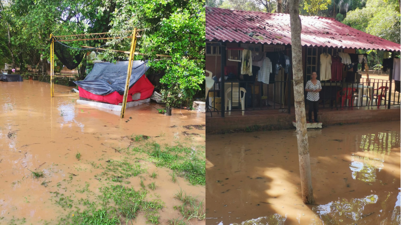 La quebrada Inalí se desbordó en la vereda San Cristóbal, afectando viviendas y cultivos.