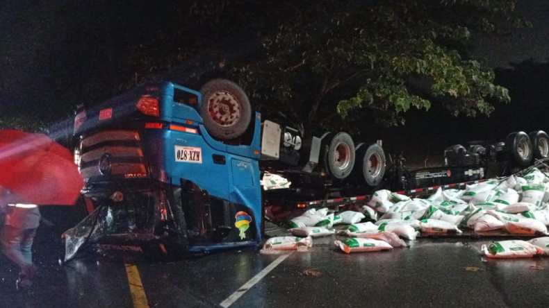 Paso restringido en la variante de Picaleña por volcamiento de tractocamión