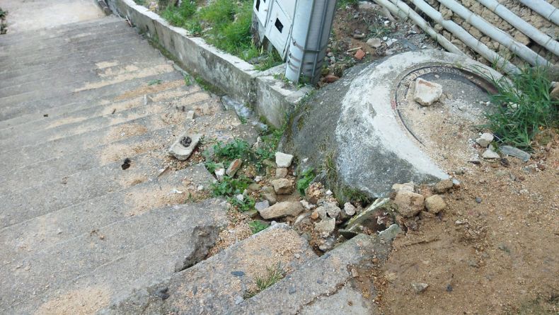 En riesgo de que las escaleras del barrio de la comuna Uno de Ibagué colapsen y afecten a algunas viviendas.
