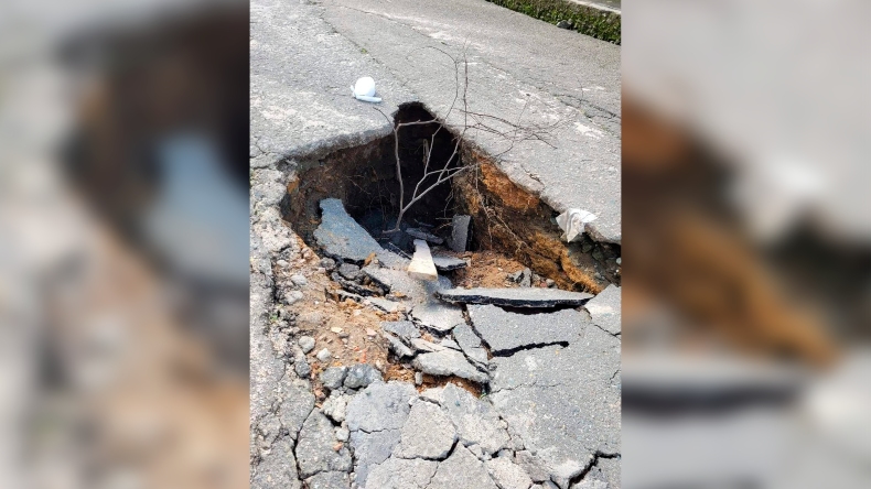 Habitantes de Rincón de Piedra Pintada en Ibagué denuncian peligroso ‘cráter’ en una de sus vías