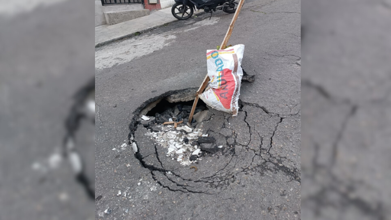 Un cráter en plena calle 18 pone en riesgo a conductores y peatones