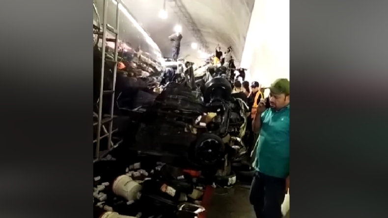 El hecho ocurrió sobre las 2:30 de la tarde de este martes cuando un tractocamión, al parecer, perdió el control y embistió varios vehículos.