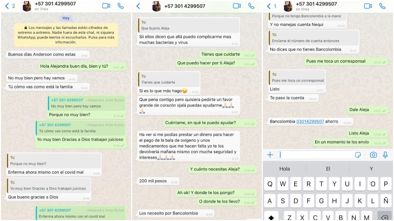 La identidad de una joven de Ibagué fue suplantada en WhatsApp. Los delincuentes aseguraron a sus contactos que ella estaba muy grave por COVID-19.