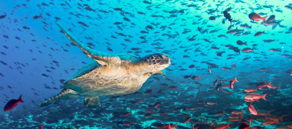 Las islas Galápagos albergan 3.000 especies marinas, entre ellas tortugas, delfines y peces tropicales.