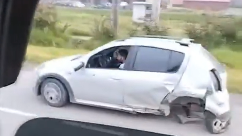 El insólito hecho ocurrió en la variante entre Bogotá y Madrid. A pesar de perder una llanta, el conductor siguió su marcha.