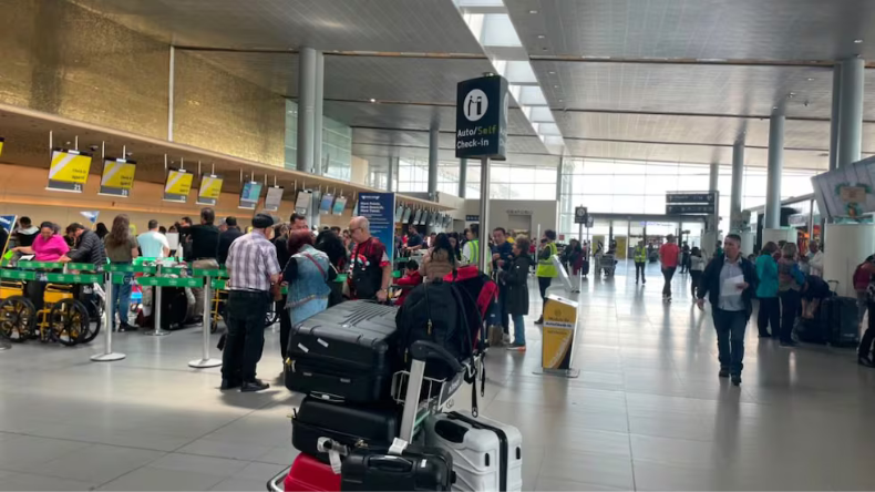 El ‘plan tortuga’ de funcionarios de Migración Colombia provoca largas filas y retrasos en vuelos internacionales en Bogotá.