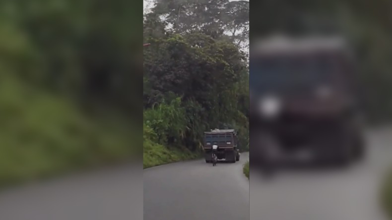 La peligrosa maniobra de un ciclista en la vía al Cañón del Combeima