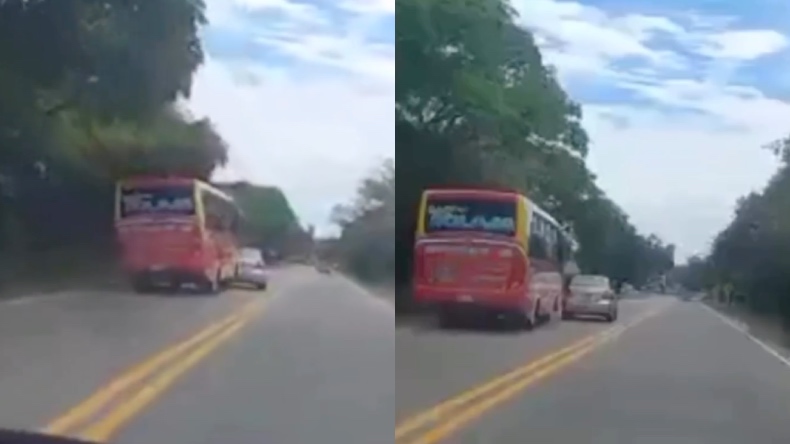 Un conductor grabó y difundió en redes sociales a un bus que intentaba adelantar en doble línea en la carretera entre Ibagué y Venadillo.