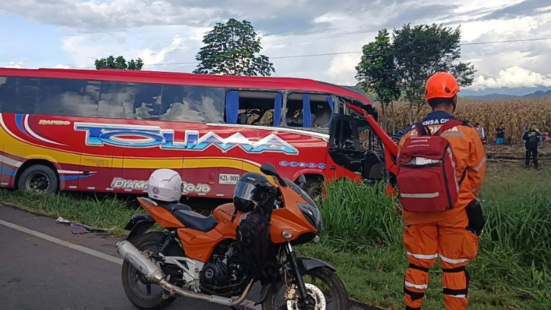 El choque entre un bus de Rápido Tolima y un tractocamión ocurrió en la vía Lérida–Mariquita. En el vehículo viajaban 45 pasajeros.