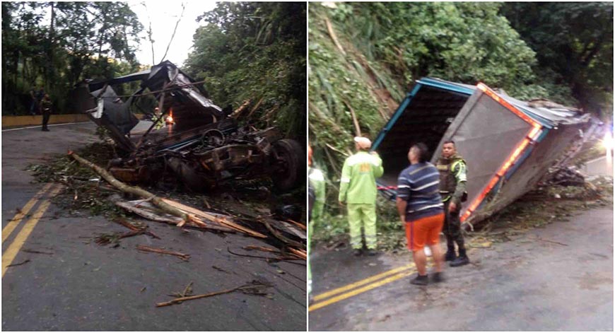 Según la Policía de Tránsito, un vehículo de carga tipo furgón se precipitó a un abismo, en el kilómetro 73, y después rodar varios metros cayó sobre la parte baja de la misma carretera.