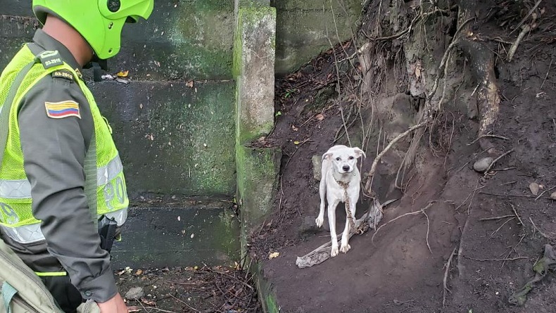 Rescatan a un canino amarrado y abandonado debajo de un puente en Honda