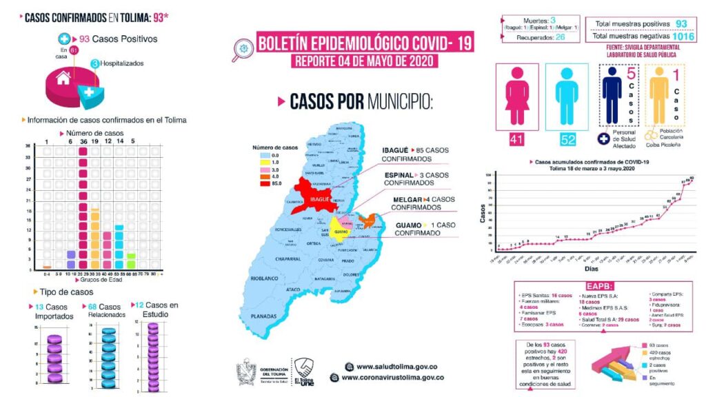 COVID-19 en el Tolima: hay más hombres infectados y el rango de edad con más positivos está entre los 20 y 29 años